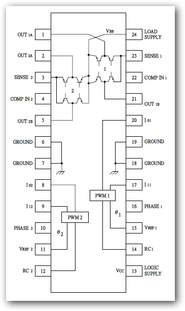 driver is designed for. Both bridges are capable of sustaining 36V and include internal pulse-width modulation
