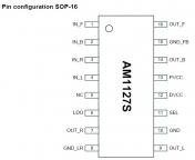 The AM1127S is two channel H-Bridge driver with a build in Low Dropout Regulator (LDO). It provides integrated motor-driver solution for high current power motion control applications. The output driver block consists of N-channel and P-channel power MOSFETs configured as H-Bridge to driver DC motor.