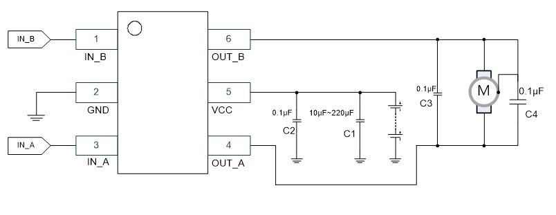 The AM1016A is one channel H-Bridge driver. It provides integrated motor driver solution for toys, robotics, consumer products and other low voltage or battery-powered motion control applications.